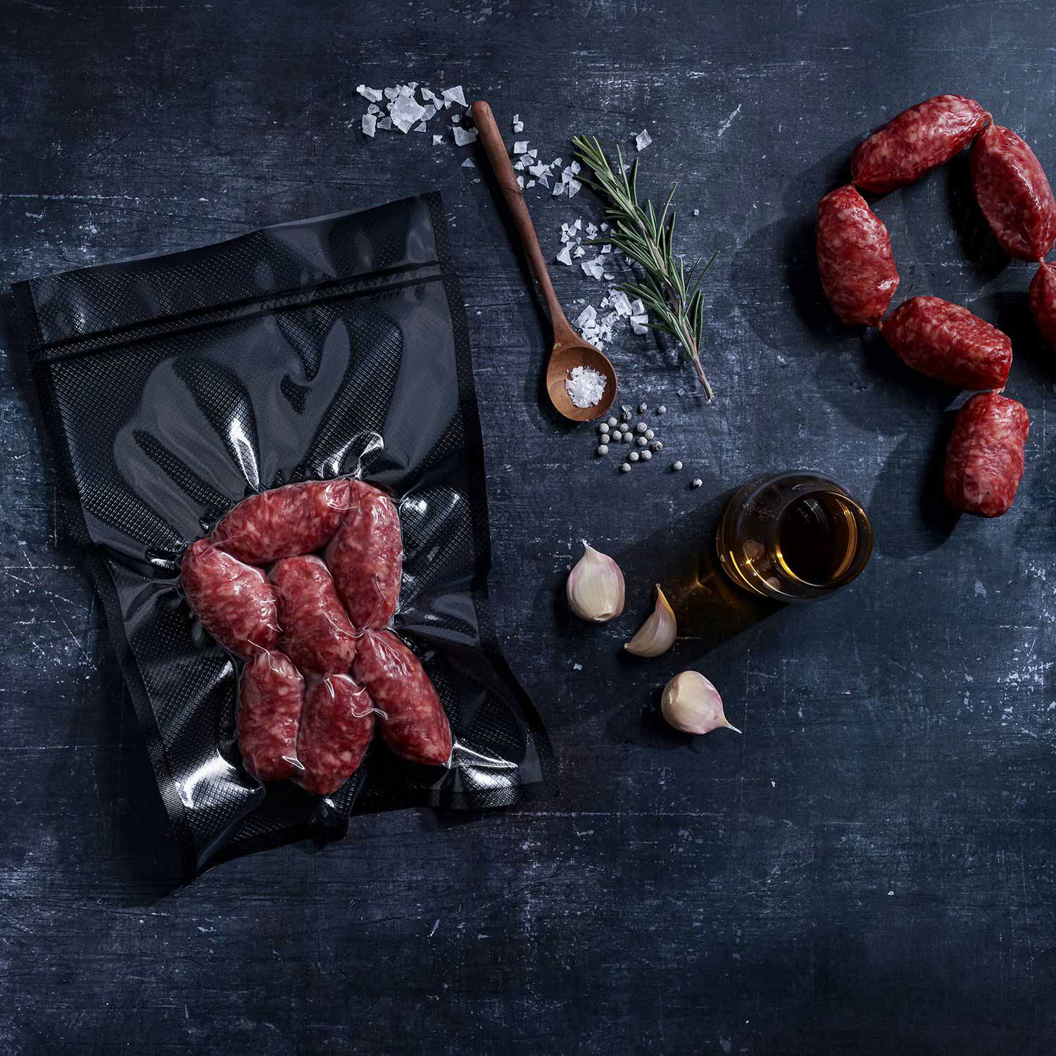 Starke Vakuumbeutel in schwarz mit Struktur, in ca. 120 µ Folienstärke. Ideal für scharfkantige Produkte oder bei besonders langer Aufbewahrungszeit der vakuumierten Ware.