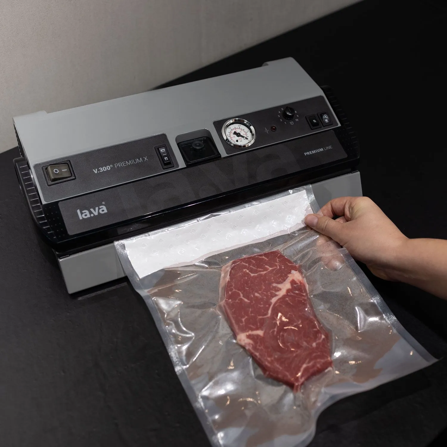 Befülle den Vakuumbeutel und lege den Streifen direkt unterhalb des