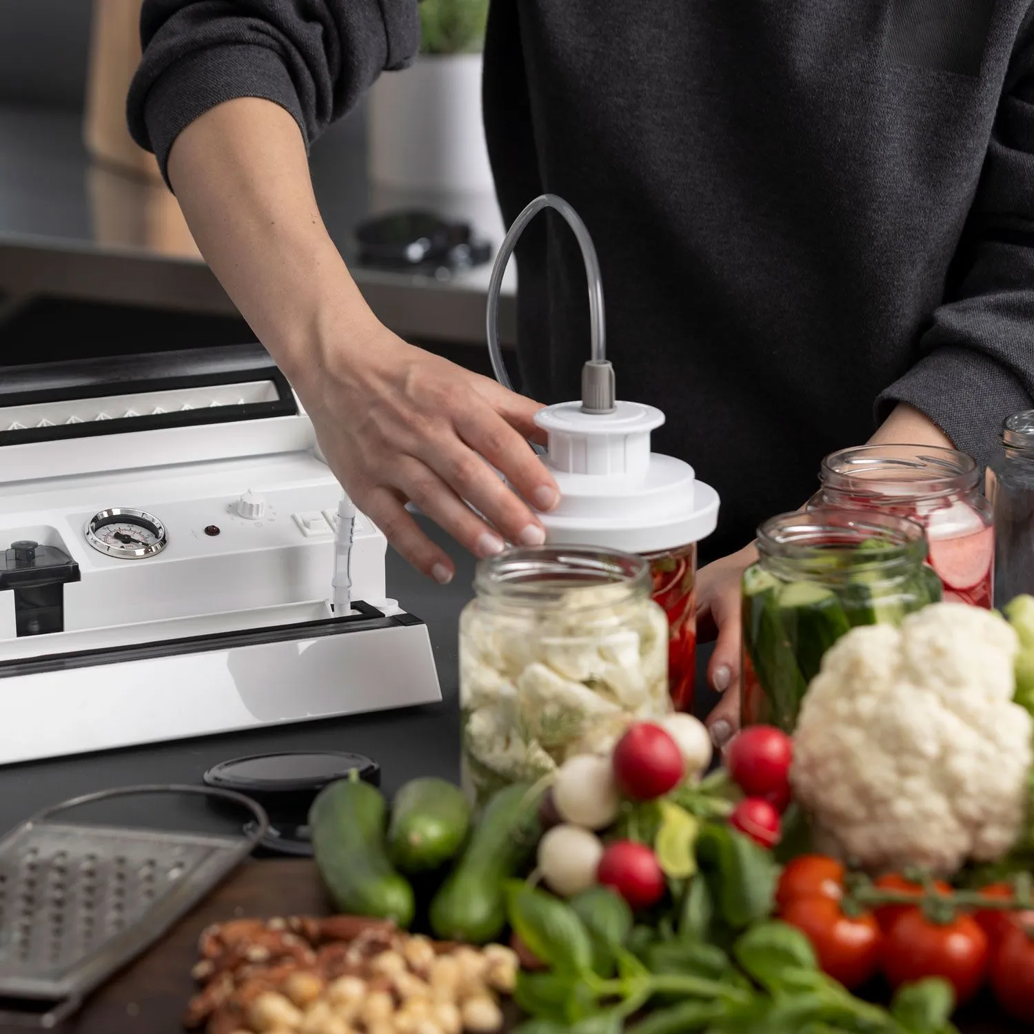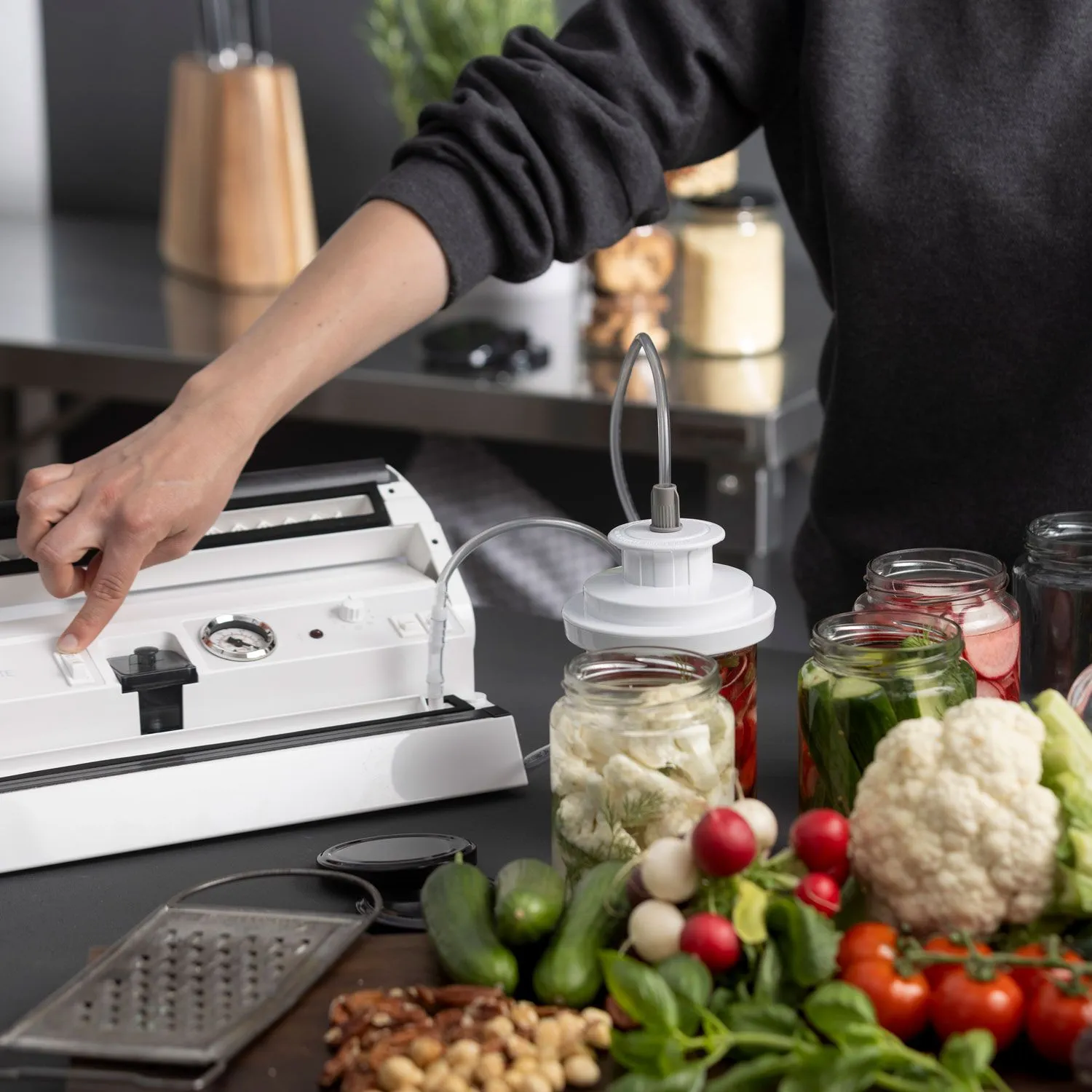 3. Schalte das Lava Vakuumiergerät in den Behältermodus und stülpe die Vakuumglocke über den Deckel des Einmachglases - der Vakuumvorgang startet dann automatisch.